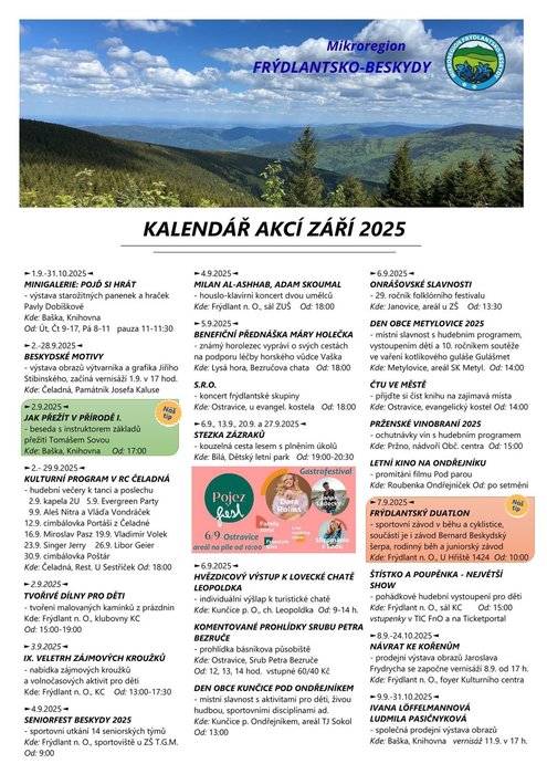 Úvod > Život v obci > Aktuality > Mikroregion Frýdlantsko-Beskydy - kalendář akcí září 2025