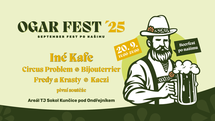 srdečně vás zveme na 2. ročník OGARFESTu, který proběhne v sobotu 20.9. v areálu TJ Sokol.