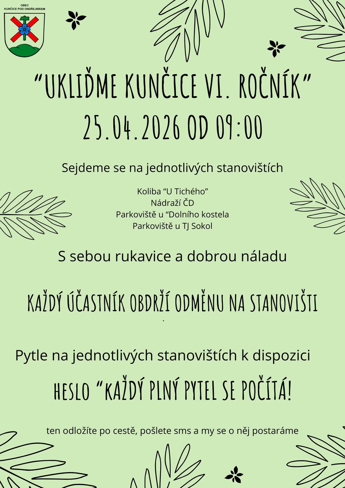 Obec Kunčice pod Ondřejníkem zve všechny dobrovolníky na již šestý ročník tradiční akce Ukliďme Kunčice.